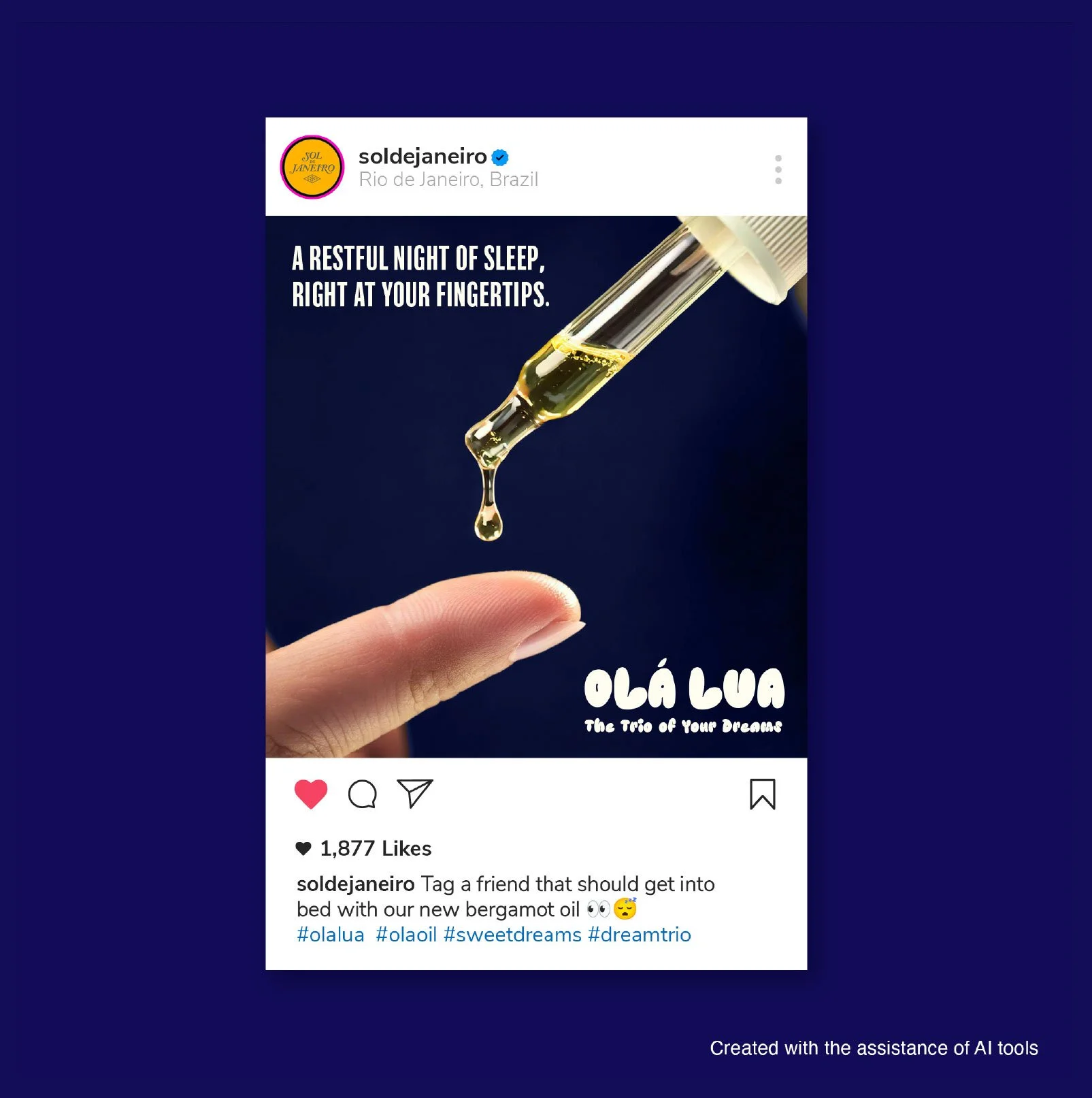 A Sol De Janeiro sleep-focused branding campaign that utilizes the golden ratio to create balanced and effective designs. The social media ads use visual tension to contrast the brand’s calming theme, drawing attention to the “Dream Trio” kit through carefully staged product moments and moody nighttime imagery. This campaign was created in Illustrator and Photoshop.